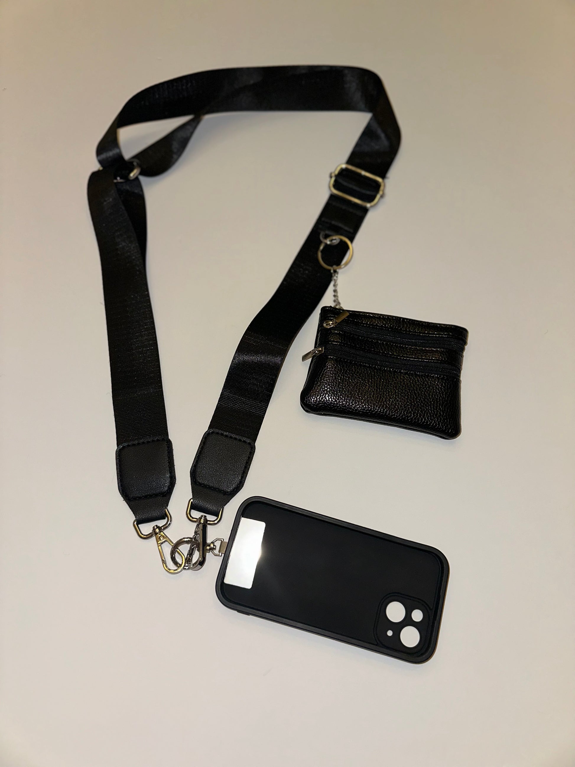Grab and go to a concert or sporting event. This has you covered with an adjustable strap silver hardware and a black wallet for your essentials.